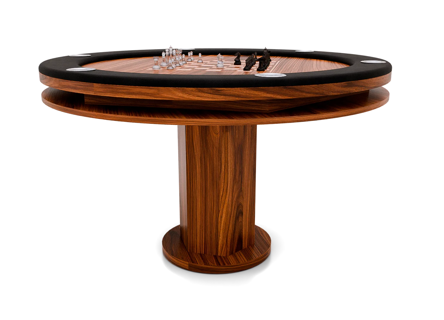 Inspirada na beleza exótica e no espírito sofisticado da ilha de Bali, essa mesa foi projetada para transformar seus momentos de lazer em experiências marcantes. Seu design circular com bordas estofadas proporciona conforto absoluto durante longas partidas, enquanto a estrutura robusta em MDF melamínico traduz durabilidade e elegância.