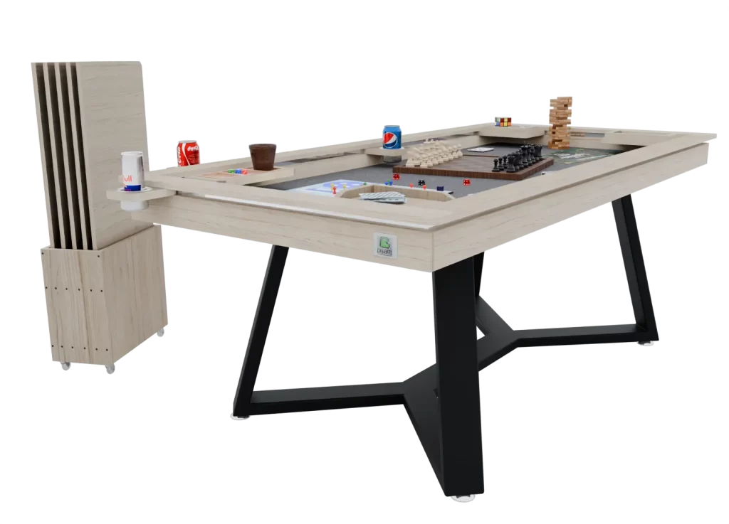 Seu espaço interno é pensado para diversos tipos de jogos, com porta-copos integrados e estrutura reforçada. Ideal para encontros memoráveis em família ou com amigos, a Mesa Istambul é mais do que um móvel: é o centro das experiências marcantes da sua casa.