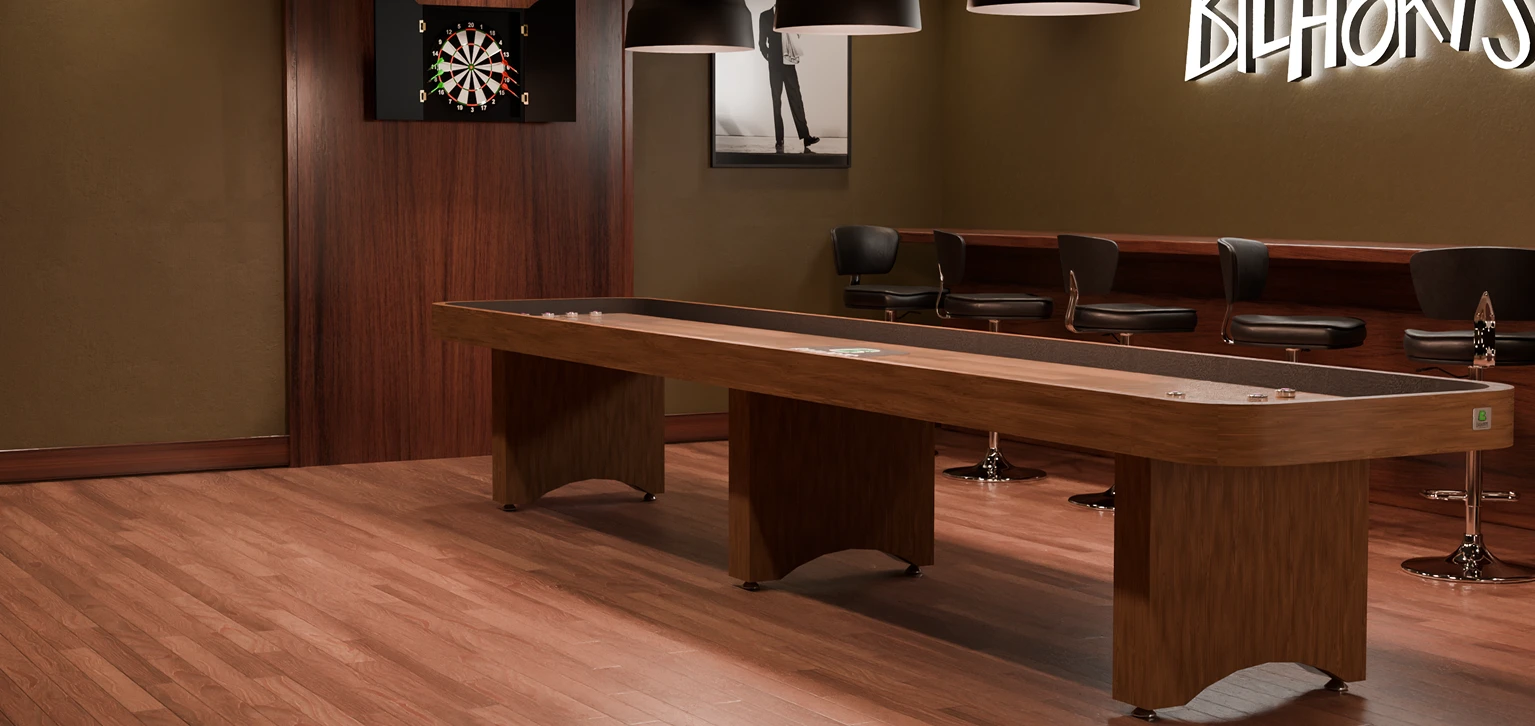Construído com materiais importados de alta qualidade e acabamento impecável, a Shuffleboard New York combina um design moderno e luxuoso. Sua superfície de jogo perfeitamente equilibrada garante deslizes suaves e precisos, enquanto o visual elegante com linhas limpas e detalhes minimalistas, faz dela uma peça central que eleva a decoração de qualquer espaço