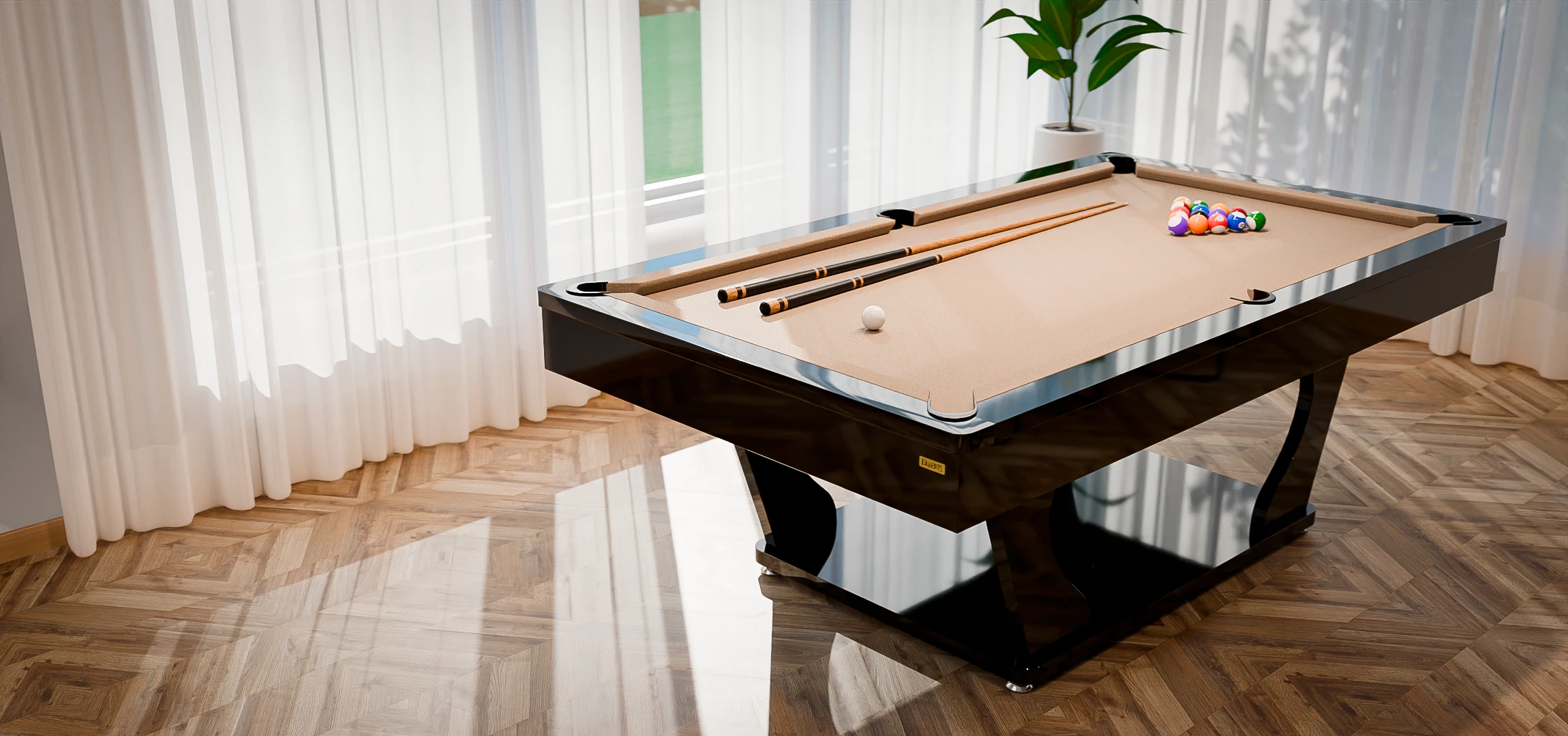 Com curvas esculturais e acabamento impecável em laca de alto brilho, a Mesa de Sinuca Ravena se posiciona como uma verdadeira obra-prima, elevando o nível estético e a experiência do seu ambiente.