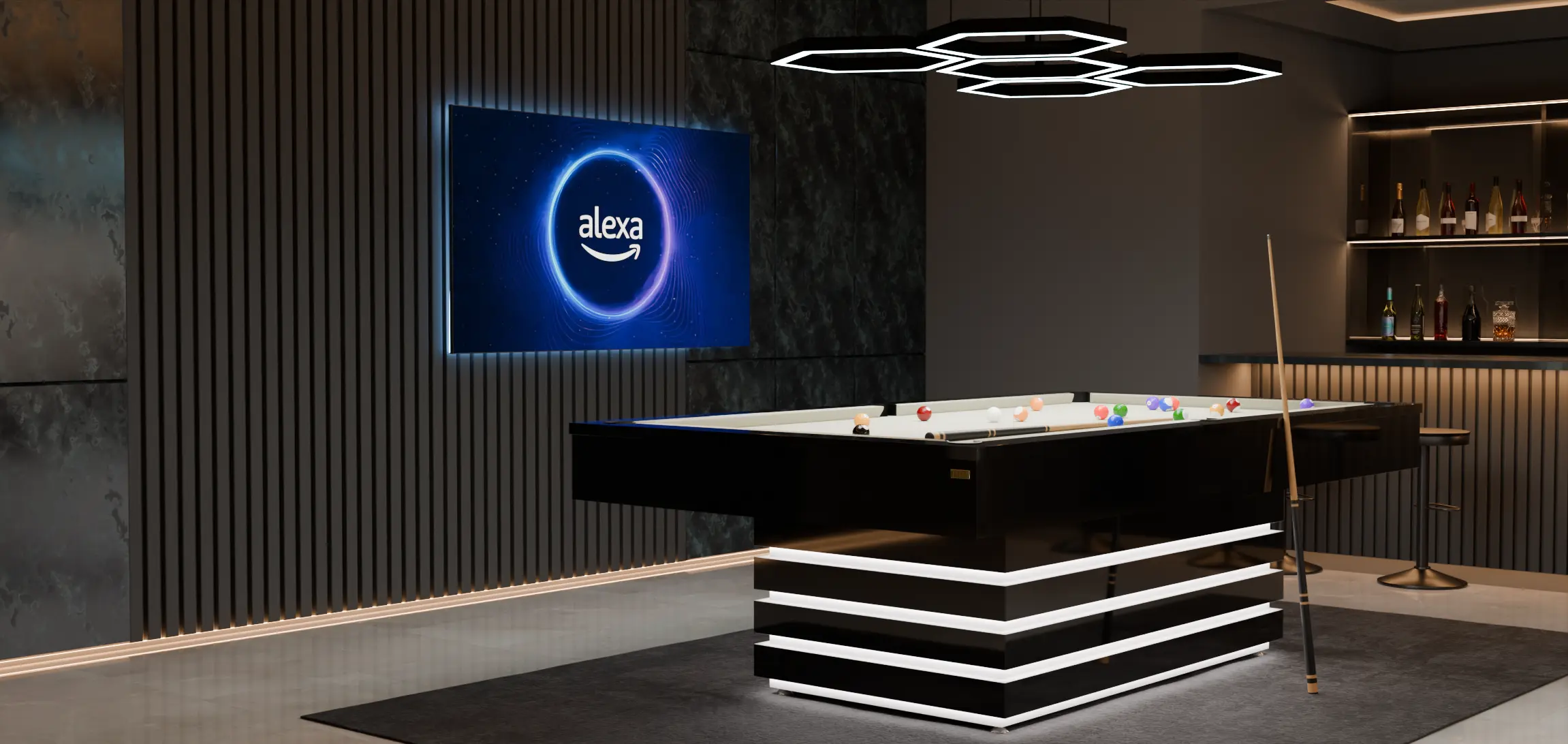 A Mesa de Sinuca Space é a união perfeita entre luxo, entretenimento e tecnologia. Com seu design exclusivo, sistema de áudio de alta performance e a inteligência da Alexa, ela oferece uma experiência inigualável, transformando qualquer ambiente em um espaço de diversão e automação inteligente. Adquira a Mesa Space e eleve seu estilo de vida a um novo patamar.